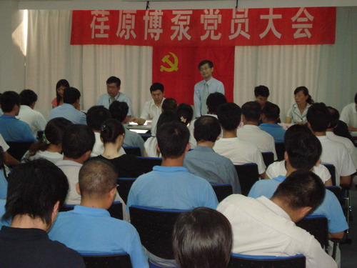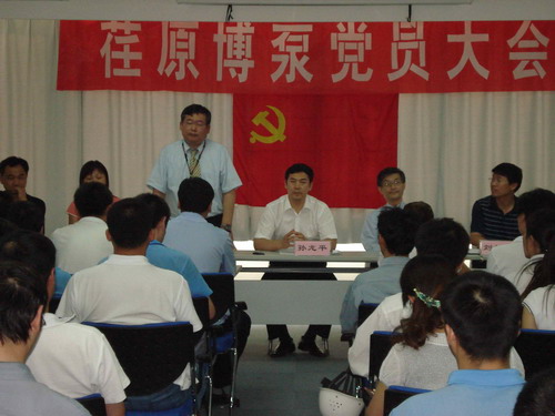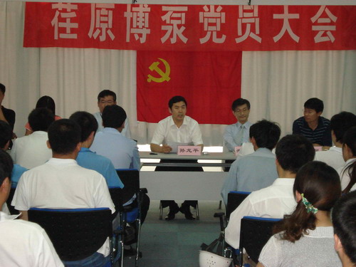 本次黨員大會由黨總支副書記姜作棟同志主持,他首先介紹了黨組織機構的組成:張玉琴同志任黨總支書記,姜作棟同志任黨總支副書記,李正民同志、劉擁民同志、王興春同志分別任統(tǒng)戰(zhàn)委員、組織紀檢委員、文體宣傳委員。荏原博泵黨總支下設管理、生產(chǎn)、質(zhì)量和業(yè)務技術四個黨支部,管理黨支部書記由邱建剛同志擔任,生產(chǎn)黨支部書記由宋遵民同志擔任,質(zhì)量黨支部書記由郝圣同志擔任,業(yè)務技術黨支部書記由梁文運同志擔任。各黨支部通過民主選舉選出了支部委員。在會上,黨總支書記張玉琴同志向全體黨員提出要求,一是加強學習,提高素質(zhì);二是增強黨性,努力工作;三是加強領導,發(fā)揮作用。著重強調(diào)了全體黨員不僅要有較高的政治素質(zhì),更要有很強的業(yè)務能力和技術水平。要一如既往的發(fā)揮黨員的先鋒模范作用,以企業(yè)經(jīng)濟發(fā)展為中心任務,身先士卒,帶頭努力干好工作,在營造團結(jié)和諧的工作氛圍中發(fā)揮作用。公司總經(jīng)理孫龍平同志在黨員大會上代表行政領導班子作了重要發(fā)言,指出目前公司正處在打基礎的關鍵時期,邊建設、邊生產(chǎn)、邊供貨、邊發(fā)展。黨組織要充分發(fā)揮政治核心作用,領導工會、共青團等群眾組織,團結(jié)凝聚廣大員工,貫徹黨的方針政策,促進企業(yè)健康發(fā)展。
