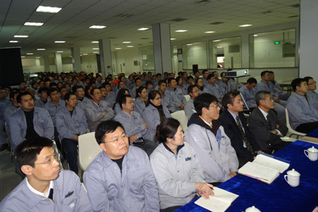 王總對各部門的工作做了分析評價:營業(yè)工作、生產(chǎn)工作、采購工作、研發(fā)工作都取得了較好的成績;公司各項管理工作都上了一個臺階;員工的大局意識、溝通配合意識,都有了顯著的進(jìn)步。王總特別提到焊接工廠,從無到有,并在較短的時間完成了相關(guān)產(chǎn)品的制作,它的成長速度,超出了我們的預(yù)期,得到了荏原制作所領(lǐng)導(dǎo)的高度評價。
